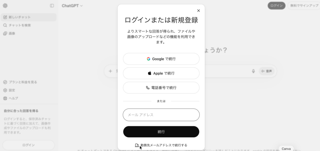 次回以降は公式サイト(https://chat.openai.com/)にアクセスするだけで、すぐに使い始めることができます。